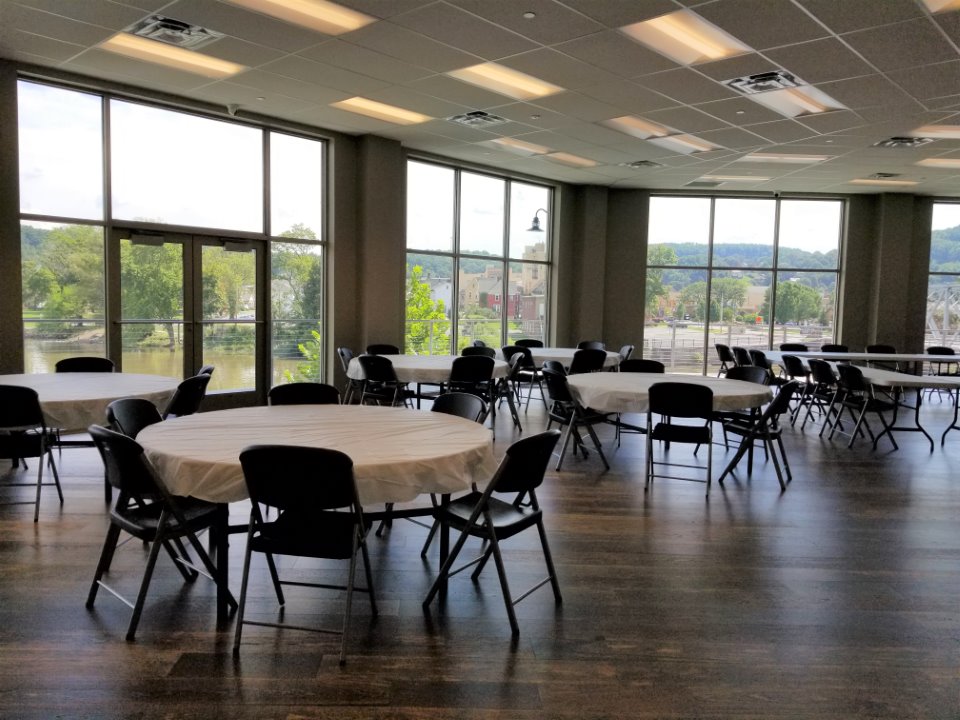 The event center is Clearfield’s only venue overlooking Downtown Clearfield’s 1-mile Riverwalk and 3 public parks.